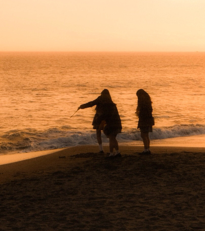 "시리게 맑지만 또 차지는 않은 날씨와 바람에 소녀들의 머릿결이 흩날린다.
