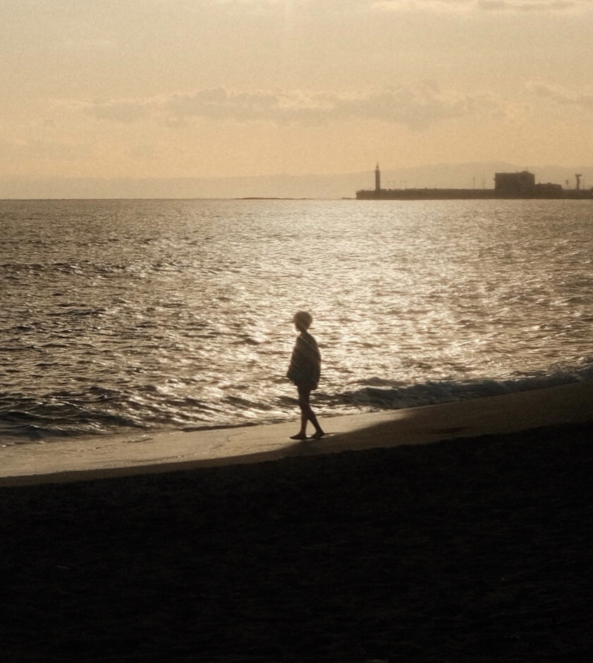 바다의 침묵 앞에서, 아이는 파도의 흐름을 조심스레 바라보며 자신의 내면과 소통한다."